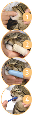 • Then, you can begin to use a toothbrush, either an ultra-soft model designed for people (baby tooth-brushes work well for cats) or a special pet tooth-brush or finger brush, which is a rubber finger covering with a small brush built in at its tip.