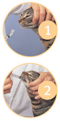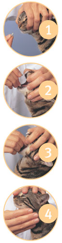 • Hold the top of the cat's head and grasp the cheekbones with the thumb and index finger of the one hand while holding the syringe or dropper with the other hand.